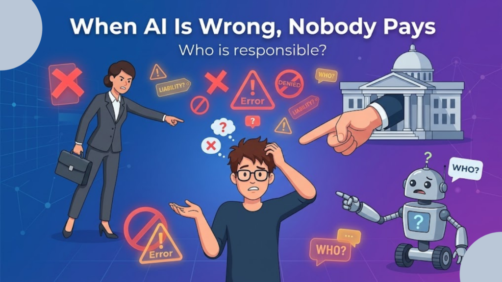 | ❓ Think About This: If an AI system makes a wrong decision that ruins your life — denies your medical claim, gives you incorrect legal information, wrongly flags you as a fraud risk — who is actually responsible? |